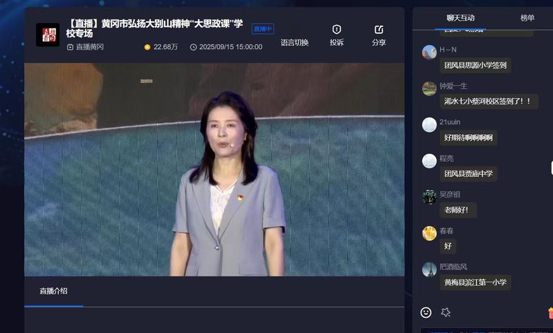 本次活动由中共黄冈市委教育工委、市委宣传部指导,黄冈师范学院主办,黄冈师范学院教务处、马克思主义学院、音乐学院、传媒与影视学院等单位共同承办。市直有关单位负责人、在黄高校领导、思政课教师代表及黄冈师范学院2025届全体新生等共计3200人现场参加活动。全市大中小学校3900名思政课教师、高校及中职学校15万名学生通过线上方式同步收看。