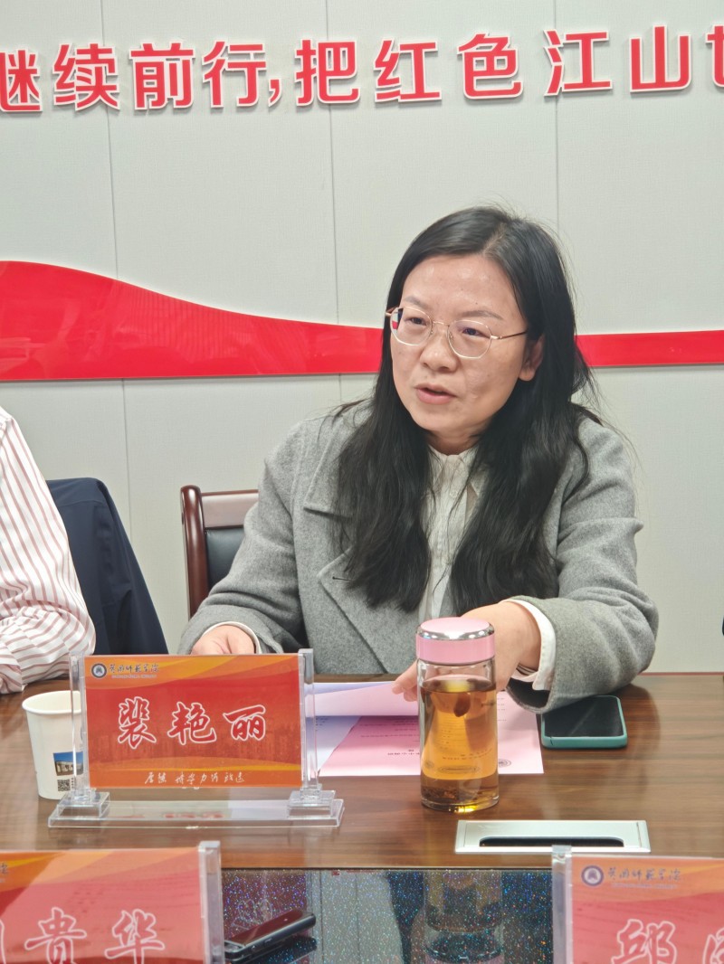在自由交流环节,马克思主义学院院长助理、湖北省大别山精神研究会副秘书长裴艳丽和地理与旅游学院院长助理陈丽军分别就大别山红色文化研究中心及研究会平台建设、红色研学及旅游等相关情况,与来访嘉宾进行了深入探讨和经验分享。双方围绕如何创新红色文化传播形式、提升育人实效及红色文旅融合等问题交换了意见,现场气氛热烈而融洽。